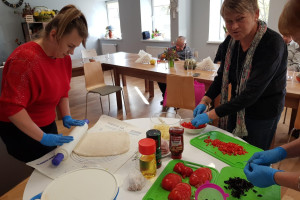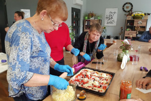 Włoskie klimaty i piękny, smakowity zapach. Dzisiaj Seniorzy w DDP w Kosinie poznali tajniki przygotowywania pizzy i aktywnie uczestniczyli w procesie tworzenia smakowitego dania.